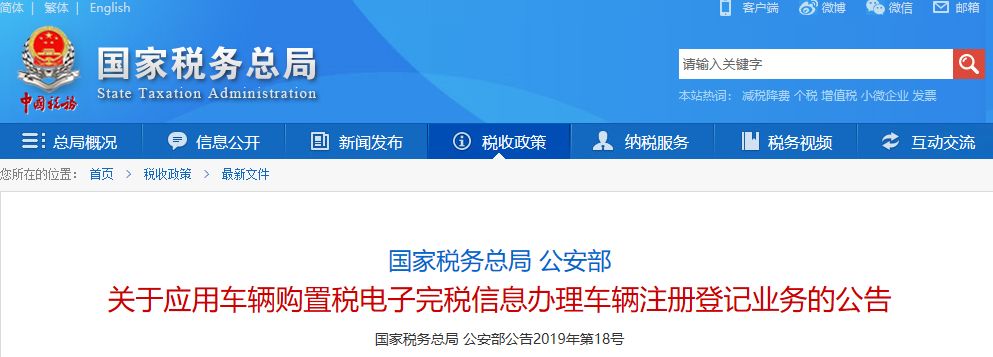 關于應用車輛購置稅電子完稅信息辦理車輛注冊登記業(yè)務的公告