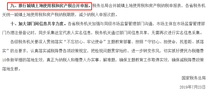 城鎮(zhèn)土地使用稅和房產稅合并申報!